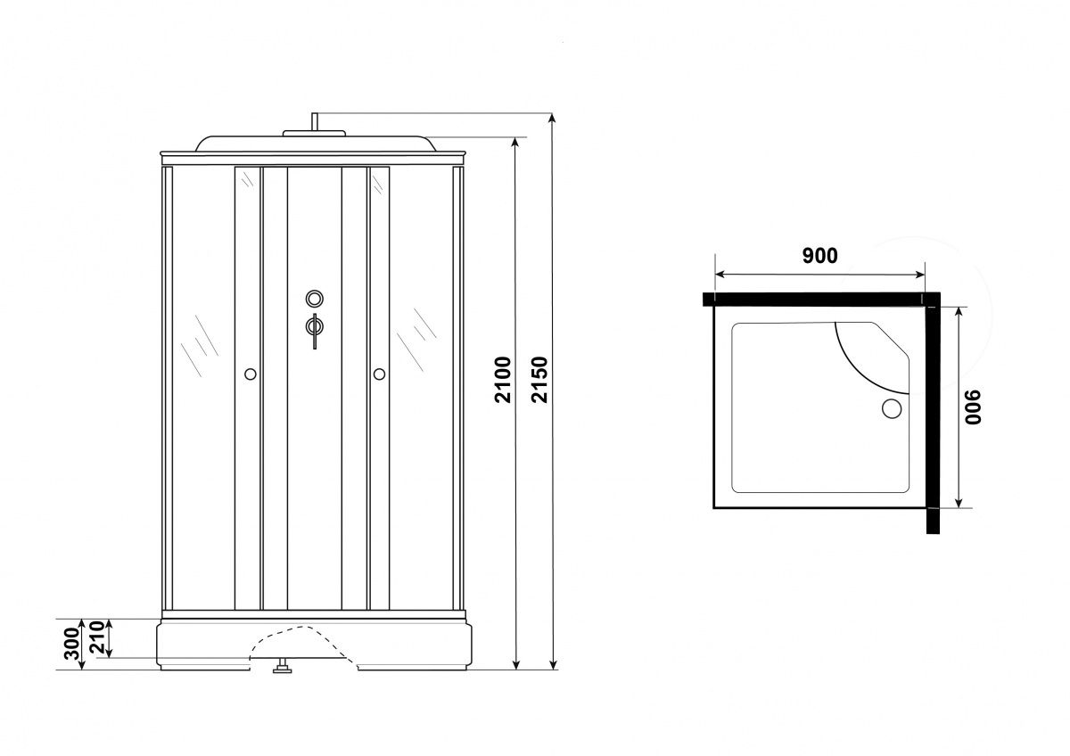 Поддон сделан из акрила, усиленный, нагрузка до 300 кг, размер 90x90x215.Чаша поддона закреплена на железном армированном каркасе с усиленными ножками. Поддон не трещит, не скрипит, не прогибается под ногами. Высота от пола до кромки верхнего бортика 30 см, внутренняя глубина чаши 21 см, сидение есть, комплектуется сифоном. Передняя панель - пластик, съемная. Стенки и двери кабины