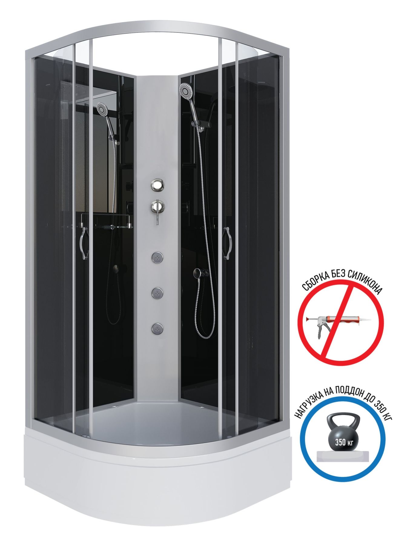 Душевая кабина Niagara NG-3502-14BKG с гидромассажем 100x100см серебро/тонированное купить