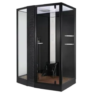 • Внутренняя, электронная панель управления: паровая сауна, bluetooth, радио FM, вентиляция, полноформатная LED подсветка потолка, озонация