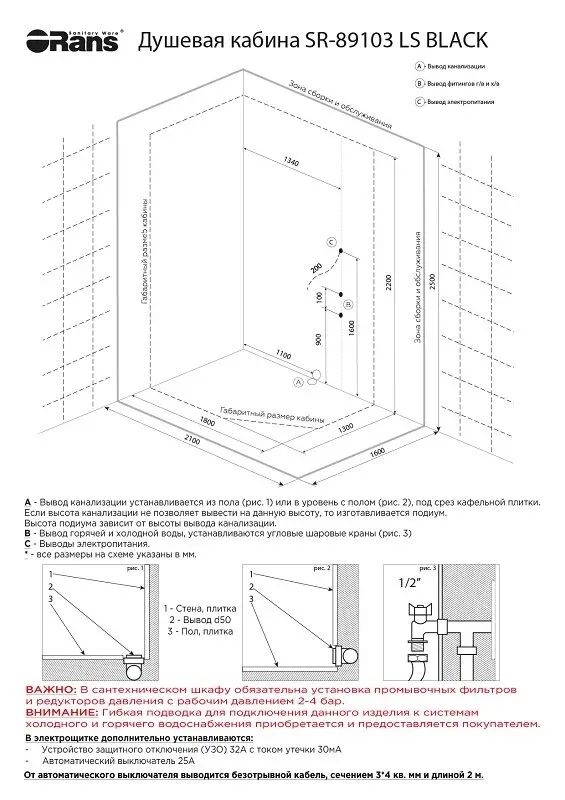 Душевая кабина Orans SR-89103RS 89103RBLH 180x130 см профиль чёрный стекло прозрачное купить