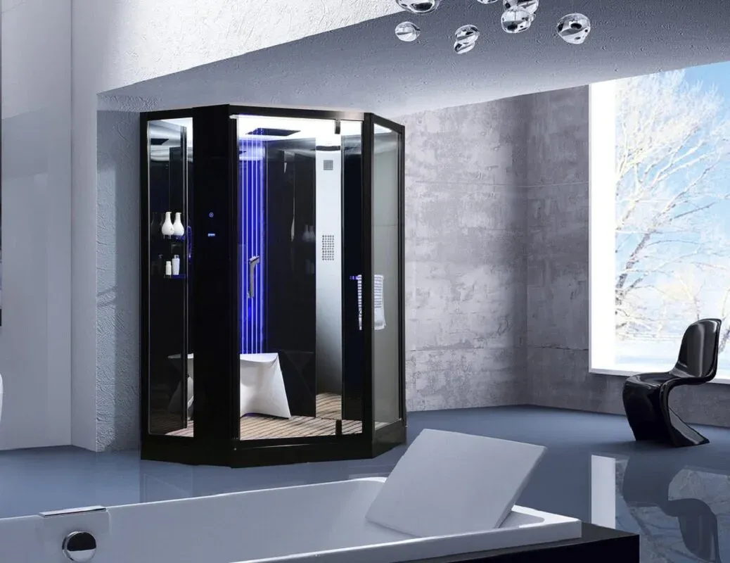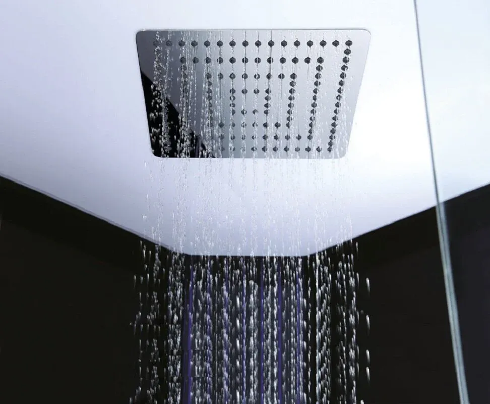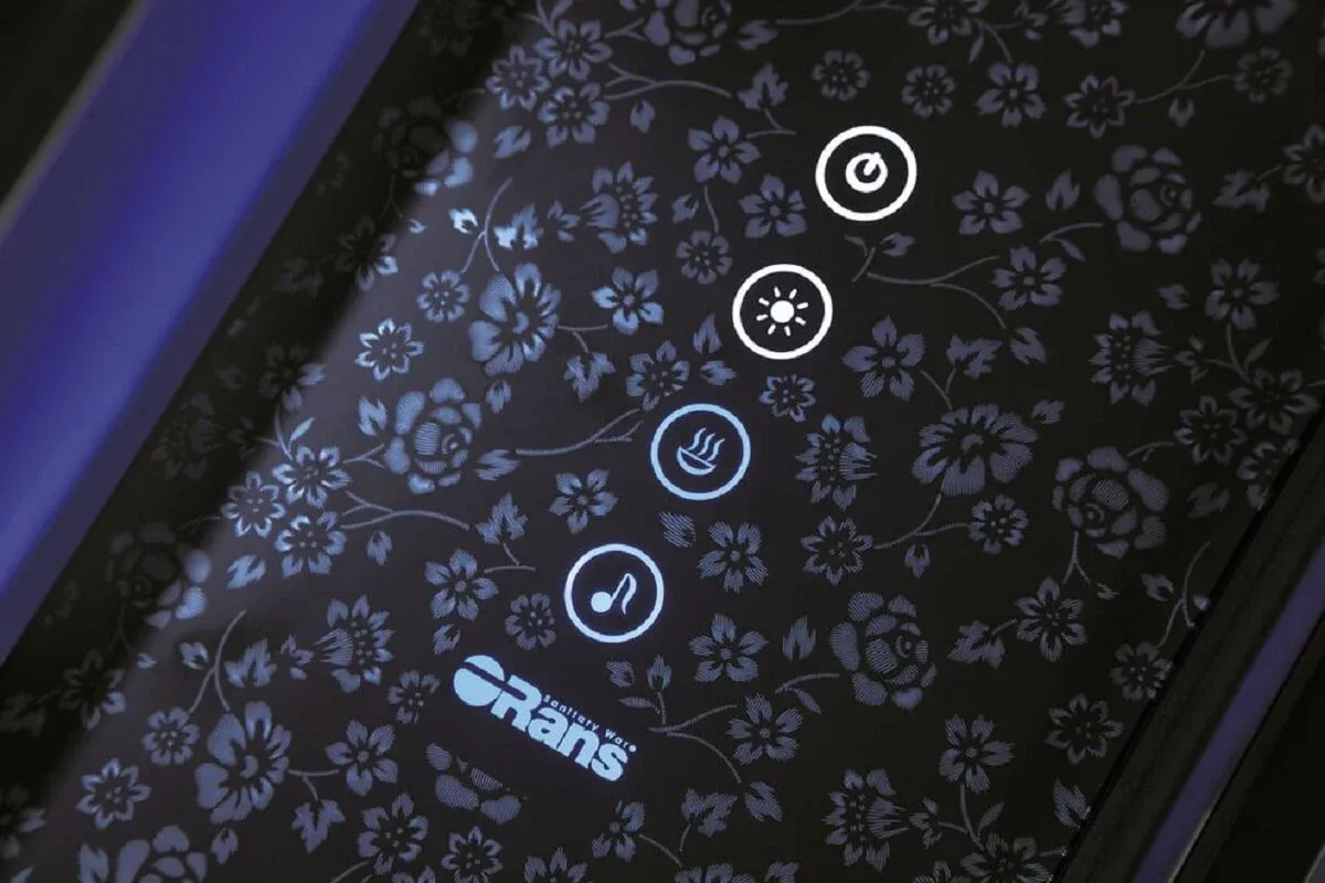 • Внешняя, электронная панель управления: включение душевой кабины, радио FM, полноформатная LED подсветка потолка, паровая сауна