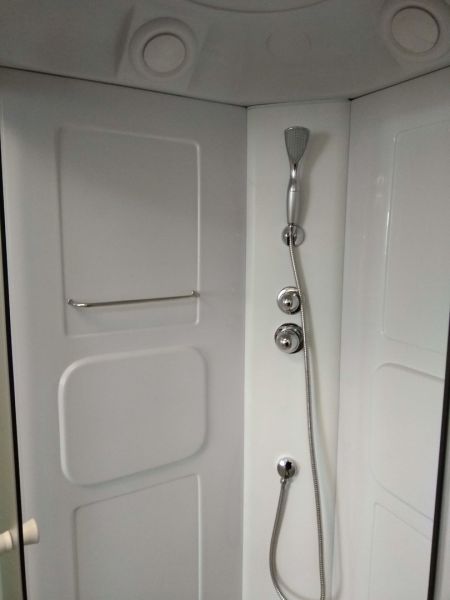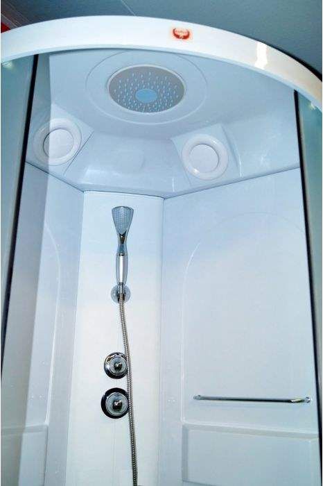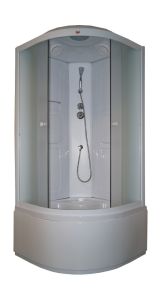 Душевая кабина Parly AE901Размеры душевой кабины Parly AE901Размер: 90х90х215 смСветлая компактная кабина подойдет в дом молодой семьи: высокие борты поддона позволяют набирать воду для замачивания вещей и купания детей, животных.Достоинства:Закаленное стекло толщиной 4 мм практически невозможно разбить. Матовое полотно не требует часто чистки. Сквозь стекло можно рассмотреть только контуры тела.Задние стенки из акрила.Профиль: белый алюминиевый. Профиль устойчив к коррозии и не боится высокой влажности.Поддон: высокий 48 см, полукруглый, с рельефным дном.Комплектация: верхний душ ТРОПИК, ручной душ, сифон.Возможна установка пульта управления в центральную панель.монтаж без силикона