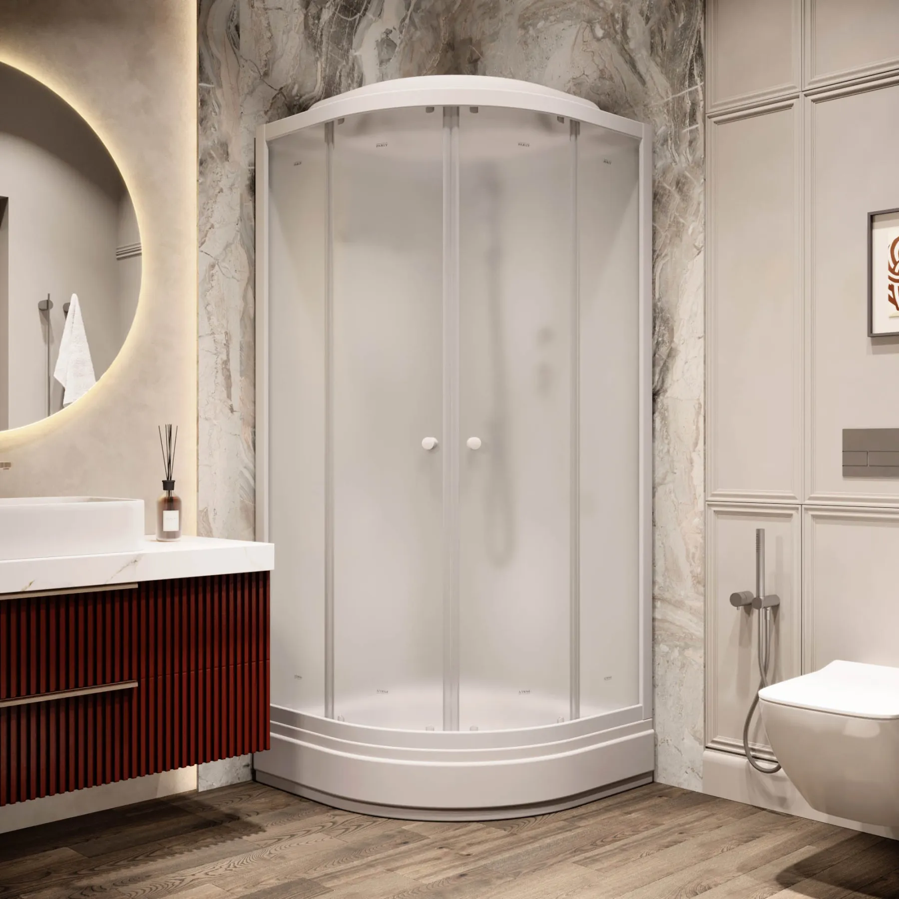 Поверхность поддона обладает противоскользящими свойствами, что делает использование кабины безопасным даже во влажных условиях. Также можно выбрать подходящую высоту бортика, чтобы избежать затопления пола.