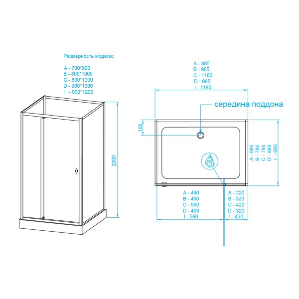 Душевая кабина квадратная и прямоугольная. Безопасное закаленное стекло 5 мм. Матовая полоса (Frost Line).Комплектация: полочка, зеркало, смеситель, ручной душ на регулируемой по высоте штанги, шланг (длина 1м) акриловый поддон, сифон и гофра для подключения к канализации.Для душевых кабин используется только высококачественный анодированный алюминий. Поддон рассчитан на нагрузку до 150 кг.