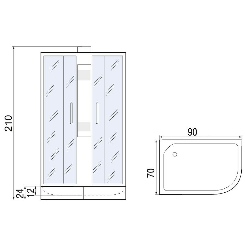 Душевая кабина River Nara 90x70 МТ R 10000008789 без гидромассажаДушевая кабина River Nara 90х70 10000008789. Характеристики: Цвет профиля: хром матовый. Материал профиля: алюминий. Исполнение полотна двери: матовое закаленное стекло толщиной 4 мм. Цвет задней стенки: белый. Материал задней стенки: закаленное стекло. Размеры (ШхВхД): 900х2100х700 мм. Материал поддона: акрил. Высота поддона: 240 мм. Глубина поддона: 120 мм. Антискользящие покрытие. Каркас поддона из нержавеющей стали. Регулируемая высота ножек. Тип поддона: низкий. Экран: съемный. Ножки для поддона из двух частей. Имеют систему шарнира для возможности установки на неровную поверхность. Конструкция дверей: раздвижная. Количество дверей: 2. Вход: спереди. Монтаж: пристенный в угол. Сборка без силикона. Вентиляция. Полочка. Тропический (верхний) душ. Держатель ручного душа. Ручной душ системой Easy Clean (легкое очищение). Шланг для душа. Регулировочный профиль, позволяющим компенсировать небольшие неровности стены. Хромированные кнопочные двойные металлические ролики. Количество режимов ручного душа: 3. Смеситель: стационарный. Сифон с гидрозатвором. В комплекте поставки: Душевая кабина