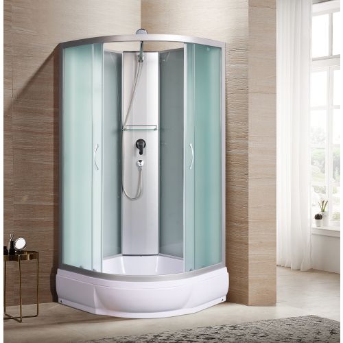 ~ без крыши ~ цент. стойка ~ ручной душ 3-х позиц. ~ держатель д/лейки ~ смеситель ~ полочка ~ поддон п/кр низ.со/съемн экр.(Н=26см) ~cифон