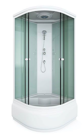поддон высокий 45см фронтальные стекла: матовые фактурные задние стекла : белые матовые задняя панель: белый пластик белый алюминиевый профиль регулируемые ролики белые ручки для дверей 2 -режимный смеситель ручная лейка слив с сифоном крыша с верхней лейкой
