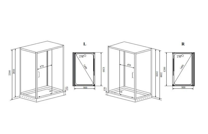 Душевая кабина Timo Premium H-520L /H-520R, 120 x 90 см, c крышей, средний поддон, стекла прозрачные, профиль хром, левый/правый