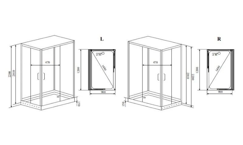 Душевая кабина Timo Premium H-520L /H-520R, 120 x 90 см, c крышей, средний поддон, стекла прозрачные, профиль хром, левый/правый