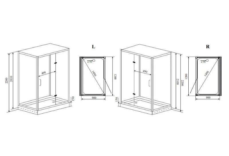 Душевая кабина Timo Premium H-511L /H-511R, 120 x 90 см, c крышей, средний поддон, стекла прозрачные, профиль хром, левый/правый