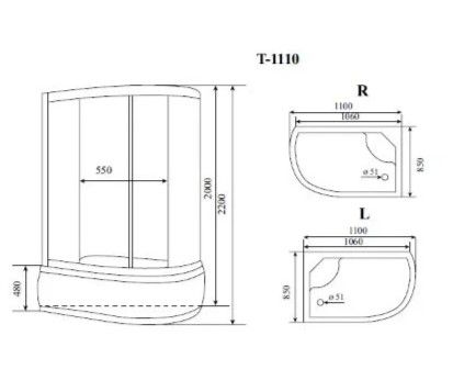 Душевой бокс Timo Standart T-6610SL/T-6610SR, 110 x 85 см, c крышей, высокий поддон, стекла матовые, профиль хром, левый/правый