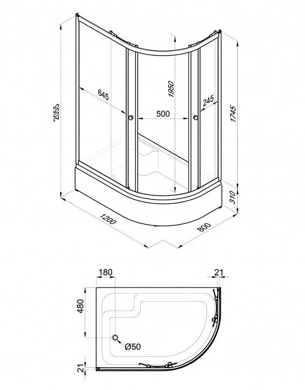 Высота с поддоном: 205.5 см