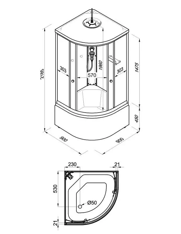 Размер: 90 x 90 x 218.5 см