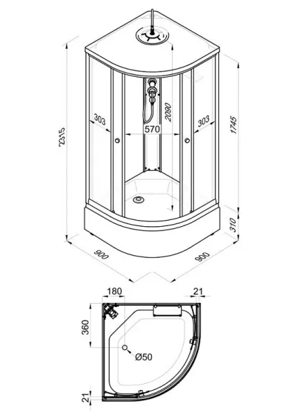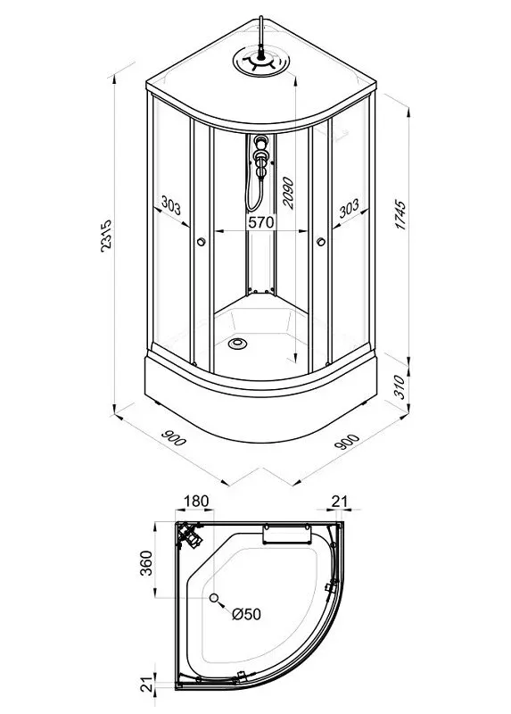 Размер: 90 x 90 x 231.5 см