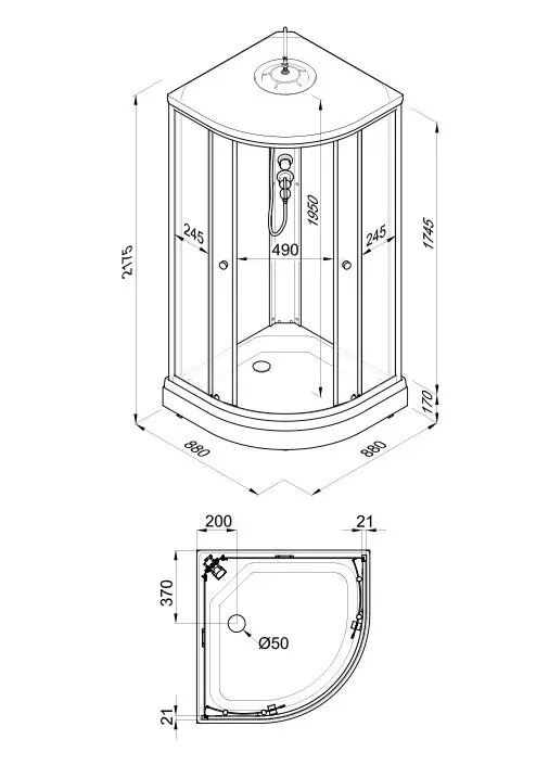 Размер: 88 x 88 x 217.5 см