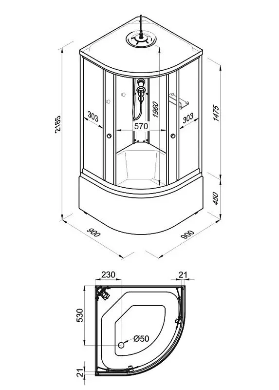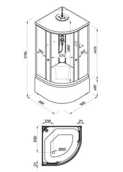 ДК Полосы 90*90 Б, 9 мест+сифон D50
