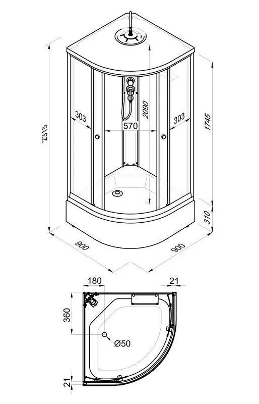 Размер: 90 x 90 x 231.5 см