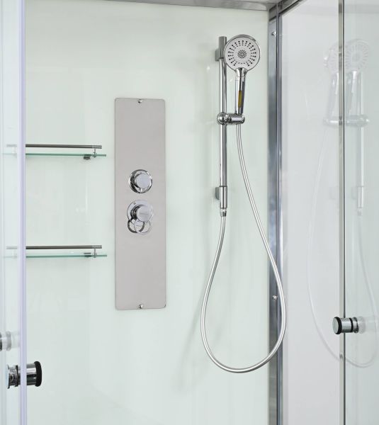 Стильная душевая кабина AvaCan сочетает в себе высокую функциональность, практичность и надежность. При изготовлении применяется безопасное закаленное стекло, надежно фиксируемое алюминиевым профилем. Профиль сделан из алюминия повышенной прочности. Сборка без силикона (увеличивает срок службы, защищает от протечек), внутренняя сборка (облегчает установку и ревизию; позволяет установить в ограниченном пространстве и обойтись без демонтажа других сантехнических приборов), смеситель резьбовой (без хомутов).Двойные металлические ролики дверей (распределение нагрузки на два ролика, увеличивают срок службы). Душевая штанга(позволяет регулировать по высоте ручную лейку), ручная арома-лейка с витамином С (картридж в комплекте,есть возможность замены или удаления картриджа), полочки(из стекла, с ограничителем), сифон с гидрозатвором.
