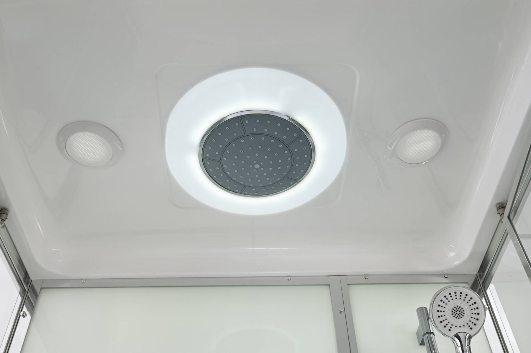 Стильная душевая кабина AvaCan сочетает в себе высокую функциональность, практичность и надежность. При изготовлении применяется безопасное закаленное стекло, надежно фиксируемое алюминиевым профилем.Профиль сделан из алюминия повышенной прочности. Сборка без силикона (увеличивает срок службы, защищает от протечек), внутренняя сборка (облегчает установку и ревизию; позволяет установить в ограниченном пространстве и обойтись без демонтажа других сантехнических приборов), смеситель резьбовой (без хомутов).Двойные металлические ролики дверей (распределение нагрузки на два ролика, увеличивают срок службы). Душевая штанга(позволяет регулировать по высоте ручную лейку), ручная арома-лейка с витамином С (картридж в комплекте,есть возможность замены или удаления картриджа), полочки(из стекла, с ограничителем), сифон с гидрозатвором, сенсорный пульт управления с функциями: блютуз, LED подсветка, радио, вытяжка, гидромассаж спины, тропический (верхний) душ.