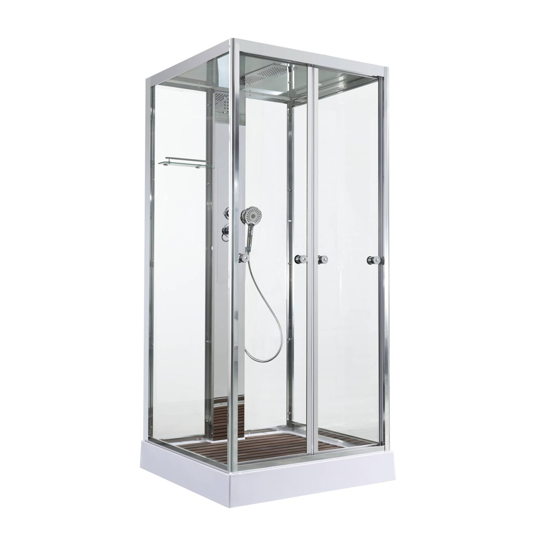 Стильная душевая кабина AvaCan сочетает в себе высокую функциональность, практичность и надежность. При изготовлении применяется безопасное закаленное стекло, надежно фиксируемое алюминиевым профилем. Профиль сделан из алюминия повышенной прочности. Сборка без силикона (увеличивает срок службы, защищает от протечек), внутренняя сборка (облегчает установку и ревизию; позволяет установить в ограниченном пространстве и обойтись без демонтажа других сантехнических приборов), смеситель резьбовой (без хомутов).Двойные металлические ролики дверей (распределение нагрузки на два ролика, увеличивают срок службы). Душевая штанга(позволяет регулировать по высоте ручную лейку), ручная арома-лейка с витамином С (картридж в комплекте,есть возможность замены или удаления картриджа), полочки(из стекла, с ограничителем), сифон с гидрозатвором.