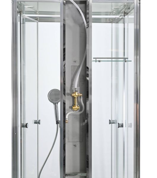 Стильная душевая кабина AvaCan сочетает в себе высокую функциональность, практичность и надежность. При изготовлении применяется безопасное закаленное стекло, надежно фиксируемое алюминиевым профилем. Профиль сделан из алюминия повышенной прочности. Сборка без силикона (увеличивает срок службы, защищает от протечек), внутренняя сборка (облегчает установку и ревизию; позволяет установить в ограниченном пространстве и обойтись без демонтажа других сантехнических приборов), смеситель резьбовой (без хомутов). Двойные металлические ролики дверей (распределение нагрузки на два ролика, увеличивают срок службы). Душевая штанга(позволяет регулировать по высоте ручную лейку), ручная арома-лейка с витамином С (картридж в комплекте,есть возможность замены или удаления картриджа), полочки(из стекла, с ограничителем), сифон с гидрозатвором.