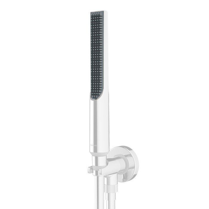Ручной душ Bossini Apice — это стильное и компактное решение для любого санузла, обеспечивающее высокий уровень комфорта во время гигиенических процедур. Выполненный в белом матовом цвете, изделие прекрасно вписывается в современные интерьеры, привнося в них нотку элегантности и утонченности. Встроенный держатель позволяет надежно фиксировать душ, что делает его использование более удобным и безопасным, особенно в условиях влажной среды. Шланг Cromolux длиной 1500 мм с универсальным подсоединением обеспечивает большую свободу движений, позволяя легко маневрировать во время водных процедур.