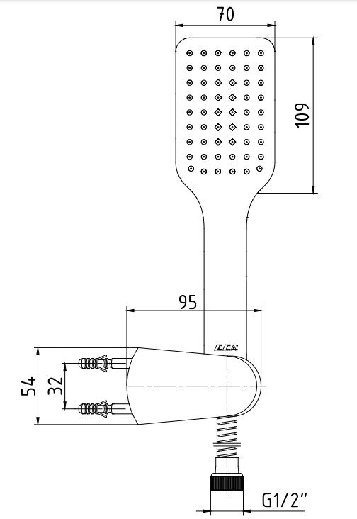 Душевой набор E.C.A предназначен для использования в ванных помещениях для подачи горячей и холодной воды. Модель оснащена душевой лейкой, шлангом и держателем ручного душа. Душевой шланг выполнен из ПВХ.Особенности: