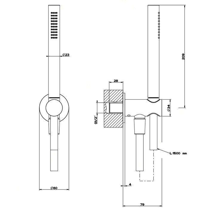 В комплекте предусмотрено шланговое подсоединение и настенный держатель, что обеспечивает удобное размещение и комфорт в использовании. Эргономичная форма душевой лейки способствует равномерному распределению воды, создавая мягкий и приятный поток. Благодаря лаконичному дизайну и матовому черному оттенку, модель легко сочетается с различными элементами сантехники и аксессуарами.