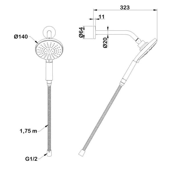 Размер ручного душа, см:14