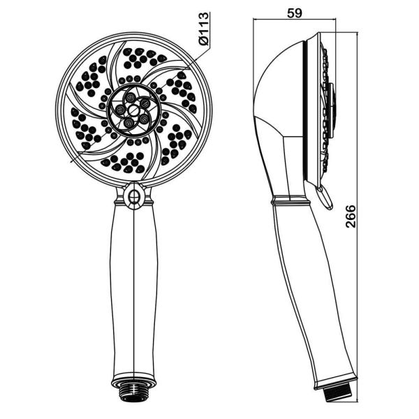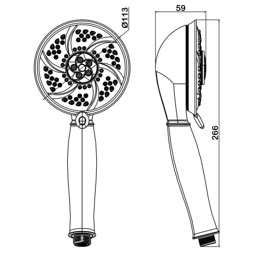 Ручной душ 6 режимов, диаметр - 113 мм. Гипоаллергенный ABСпластик. Форсунки из силикона с функцией самоочистки.