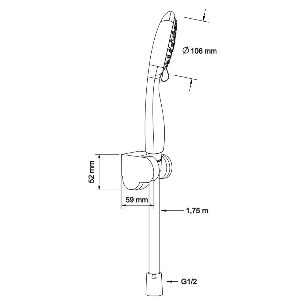 Душевой наборДиаметр лейки 106 мм. 5 режимов.Форсунки из силикона с функцией самоочистки.Гипоаллергенный пластик.Многопозиционный кронштейн.Шланг PVC 1,75 м.Цвет: черный.