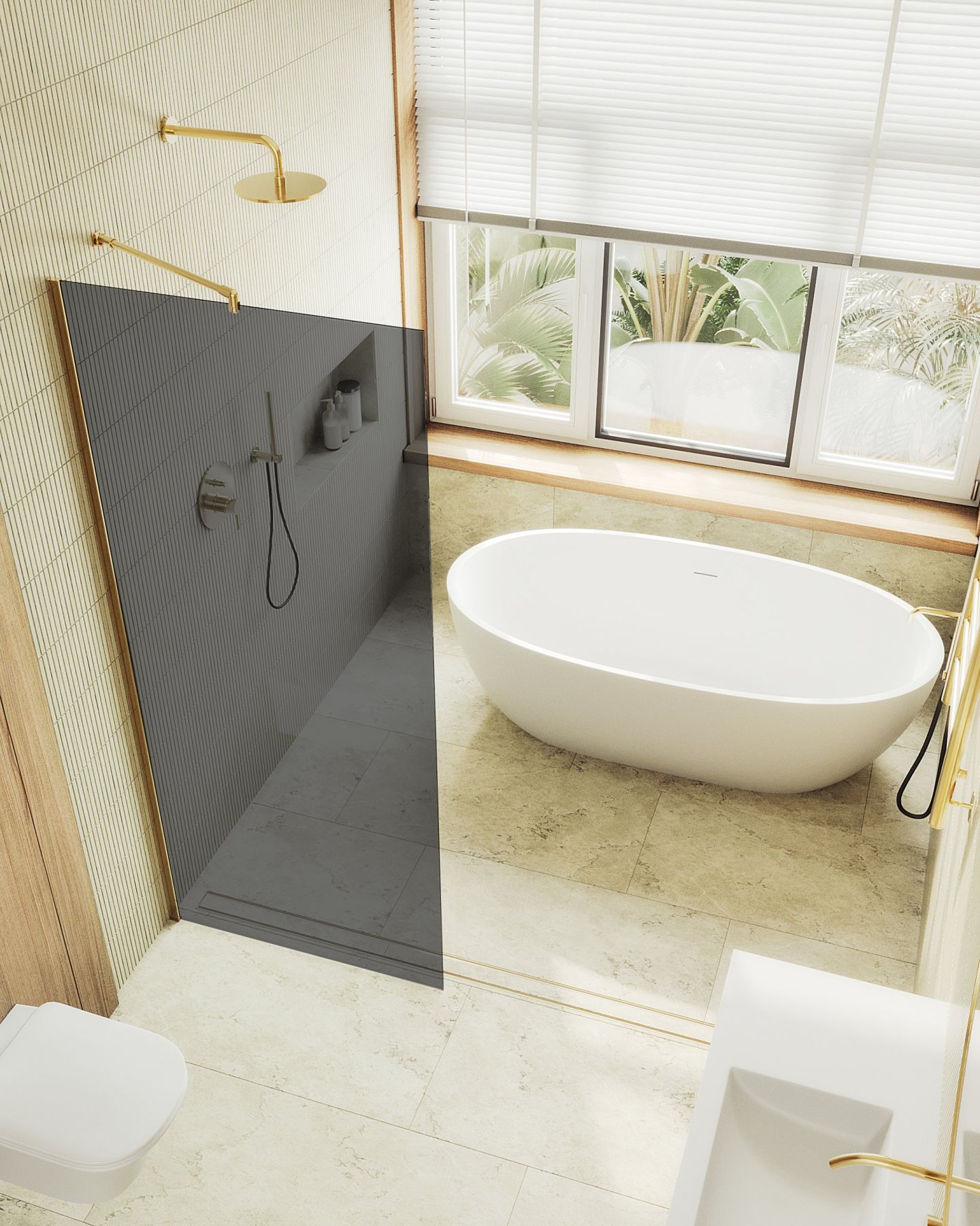 Стеклянная душевая перегородка в профиле - стильный и функциональный элемент, предназначенный для разделения пространства в ванной комнате. Перегородка изготовлена из закаленного стекла, обеспечивающего безопасность и долговечность. Профиль из анодированного аллюминия добавляет конструкции прочности и устойчивости. Благодаря разнообразию размеров и дизайнов, стеклянная душевая перегородка идеально впишется в любой интерьер. Закаленное стекло , цвет графит , толщина 8 мм , 1950*790-1 шт.