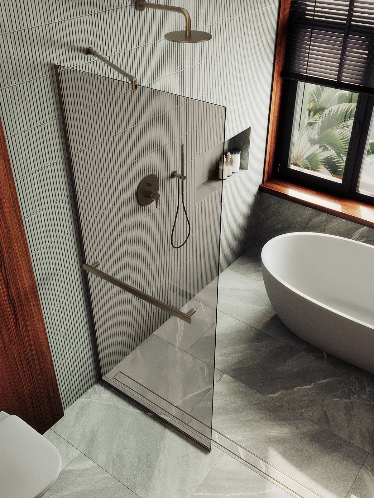 Душевая перегородка в профиле с полотенцесушителем представляет собой компактное и функциональное решение для разделения пространства в ванной комнате . Она изготовлена из закаленного стекла,анодированного алюминиевого профиля, что обеспечивает прочность и долговечность конструкции. Закаленное стекло , цвет бронза , толщина 8 мм , 1950*790-1 шт.