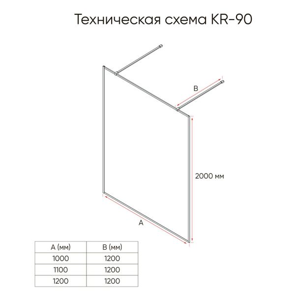 Душевая перегородка Veconi Korato KR-90BB, 1100x2000, черный матовый, черное купить