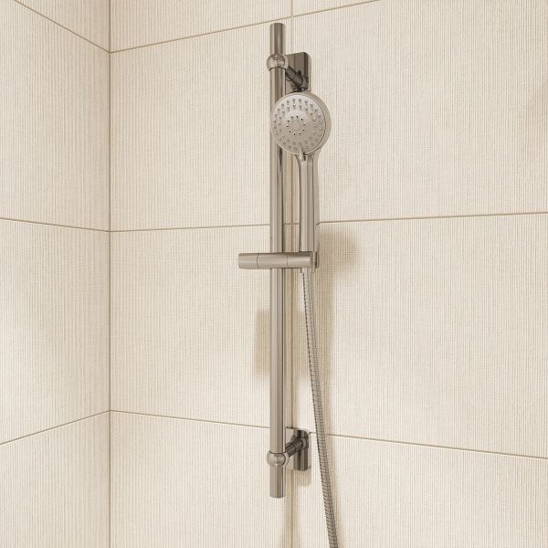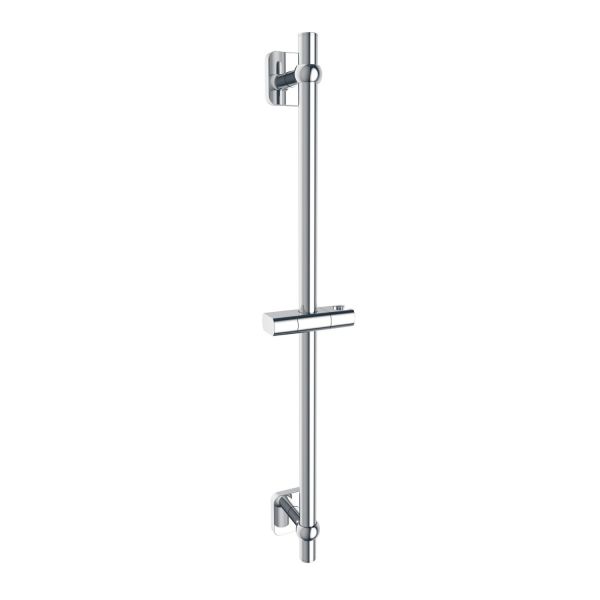 Стойка для душа, хром, нержавеющая сталь с никель-хромовым покрытием, высота 700 мм, диаметр 22 мм. Оба крепления свободные. Держатель лейки из ABS-пластика, поворотное крепление, регулировка наклона лейки. Крепеж в комплекте.
