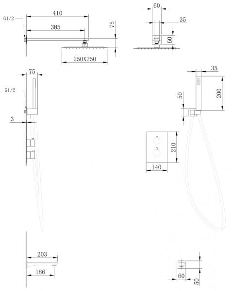 Душевая система ABBER Weiss Insel с термостатом хром AF8050
