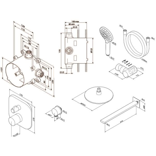 Диаметр верхнего душа: 250 мм.