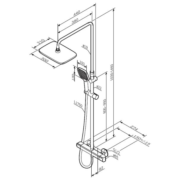 Душевая система AM.PM Func F078F400 с термостатом Хром