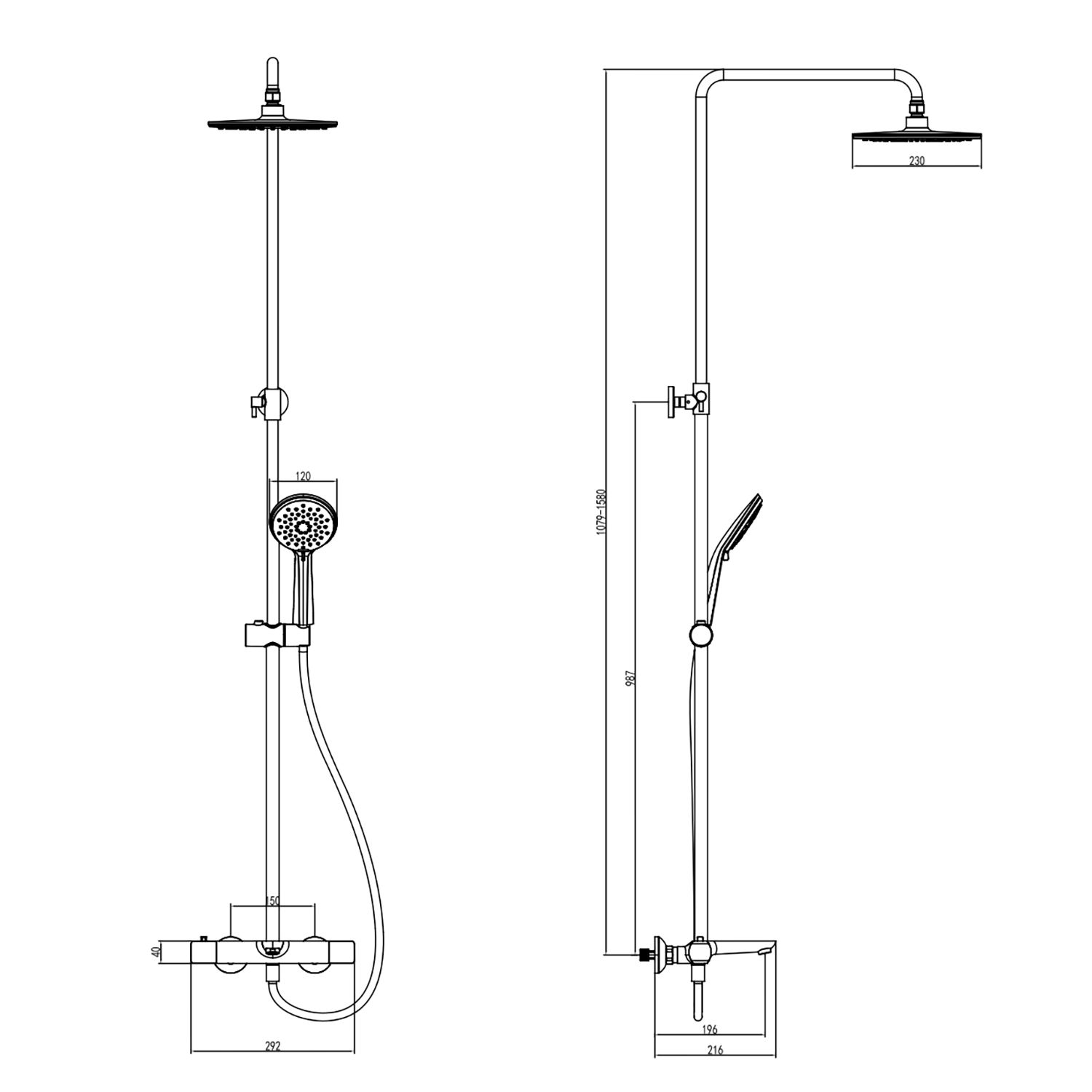 Размер верхнего душа, см:230