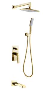 Душевой комплект Venturo итальянской компании Boheme сделает эффектным современный интерьер. Представленная новинка включает в себя излив, предназначенный для наполнения ванны. Скрытый монтаж придает оборудованию аккуратный внешний вид и упрощает уборку. В набор входят двухпозиционный смеситель с керамическим картриджем, верхний душ и ручная лейка. Высококачественная латунь, из которой изготовлены корпусы элементов, характеризуется прочностью и устойчивостью к воздействию влаги и высоких температур. Золотое покрытие не царапаются, не выцветают и легко очищаются от загрязнений. Рычажное управление позволяет настроить точную температуру и напор. Устройства функционируют бесшумно и без протечек в течение длительного времени.