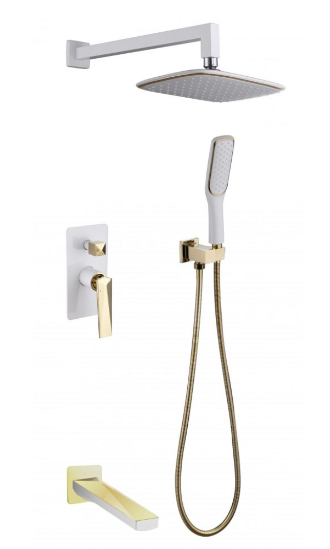 Душевой комплект Venturo итальянской компании Boheme сделает эффектным современный интерьер. Представленная новинка включает в себя излив, предназначенный для наполнения ванны. Скрытый монтаж придает оборудованию аккуратный внешний вид и упрощает уборку. В набор входят двухпозиционный смеситель с керамическим картриджем, верхний душ и ручная лейка. Высококачественная латунь, из которой изготовлены корпусы элементов, характеризуется прочностью и устойчивостью к воздействию влаги и высоких температур. Белое и золотое покрытия не царапаются, не выцветают и легко очищаются от загрязнений. Рычажное управление позволяет настроить точную температуру и напор. Устройства функционируют бесшумно и без протечек в течение длительного времени.
