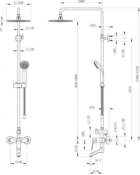 Размер верхнего душа, см:22