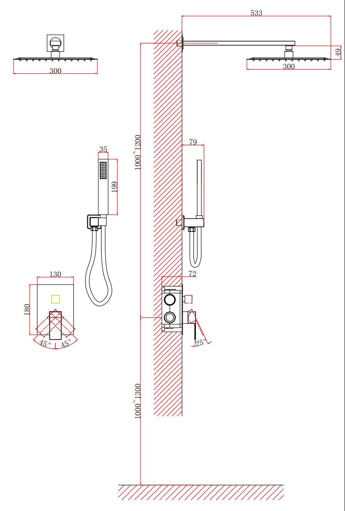• Размер верхнего душа, см: