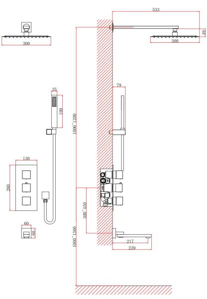 Душевая система DQ Bayern.Liszt DA2515606A04 с термостатом серый графит купить