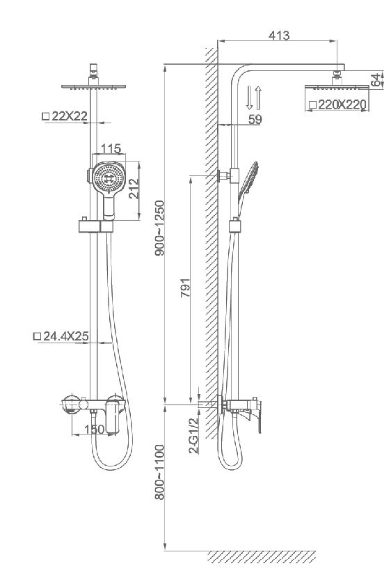 Размер верхнего душа, см:22
