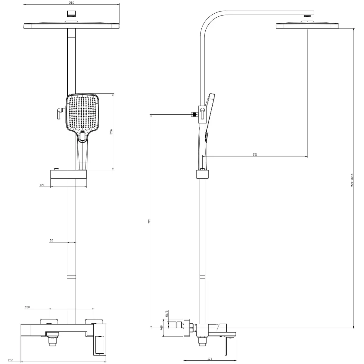 Душевая система DQ Dortmund DA1713705 320x210 мм, со смесителем, черный матовый