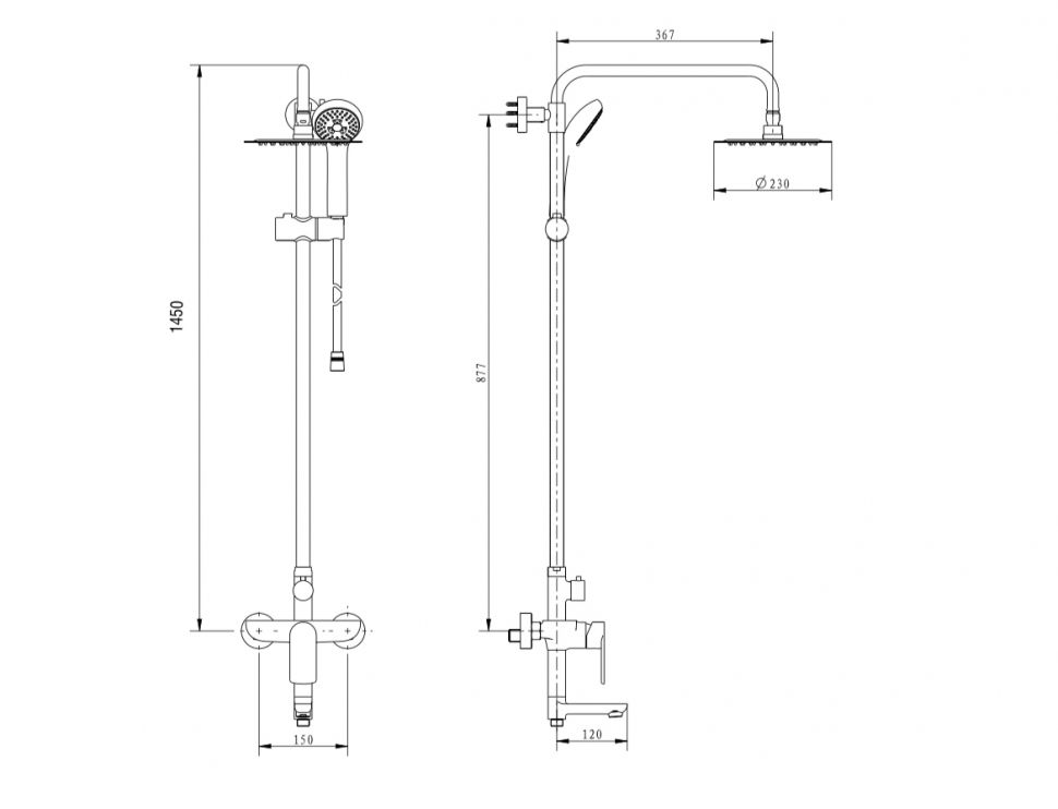 Размер верхнего душа, см:23
