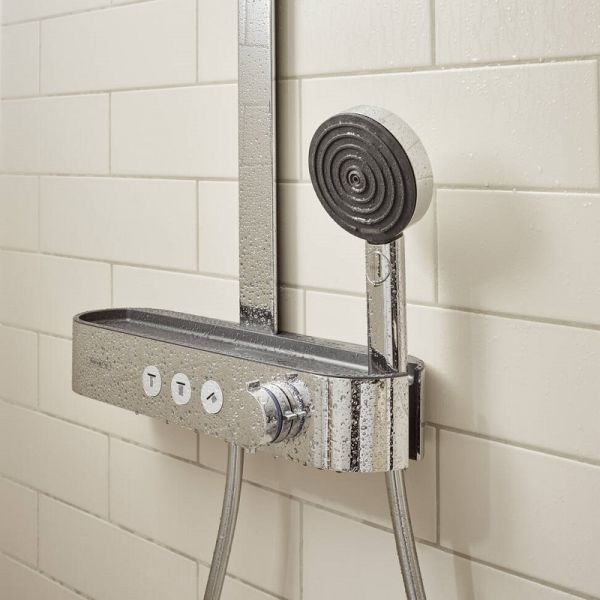 Душевая система Hansgrohe Pulsify S, Showerpipe 260 2jet термостатическая ShowerTablet Select 400, хром, 24240000Состоит из: верхний душ, ручной душ, термостат для душа, душевая штанга, штанга для душаверхний душ Pulsify 260 2jet