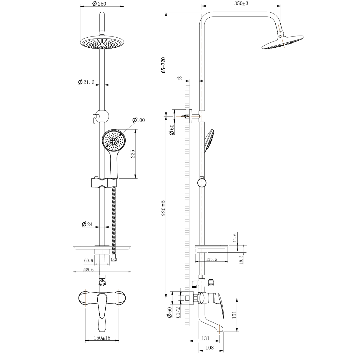 Душевая система Lemark Linara LM0462C для ванны и душа с регулируемой высотой штанги купить