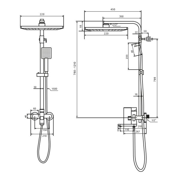 Размер верхнего душа, см:22x22
